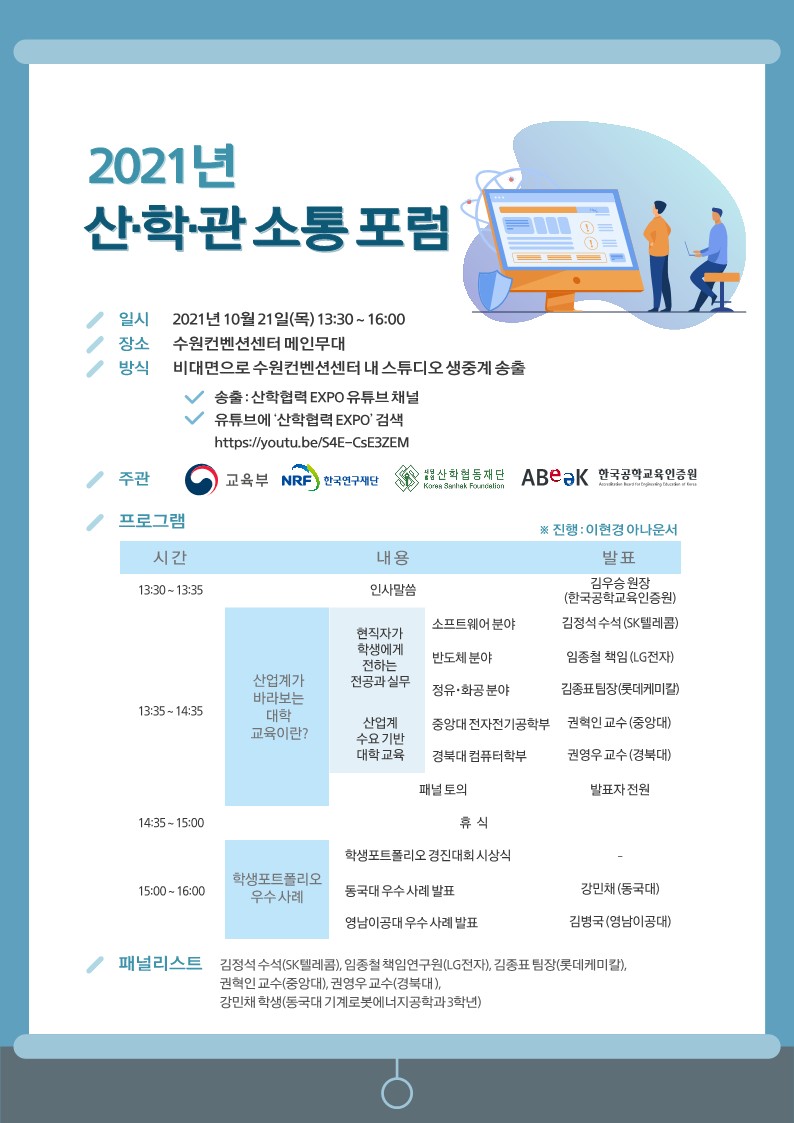 2021년 산・학・관 소통 포럼이 아래와 같이 온라인으로 개최될 예정이오니,