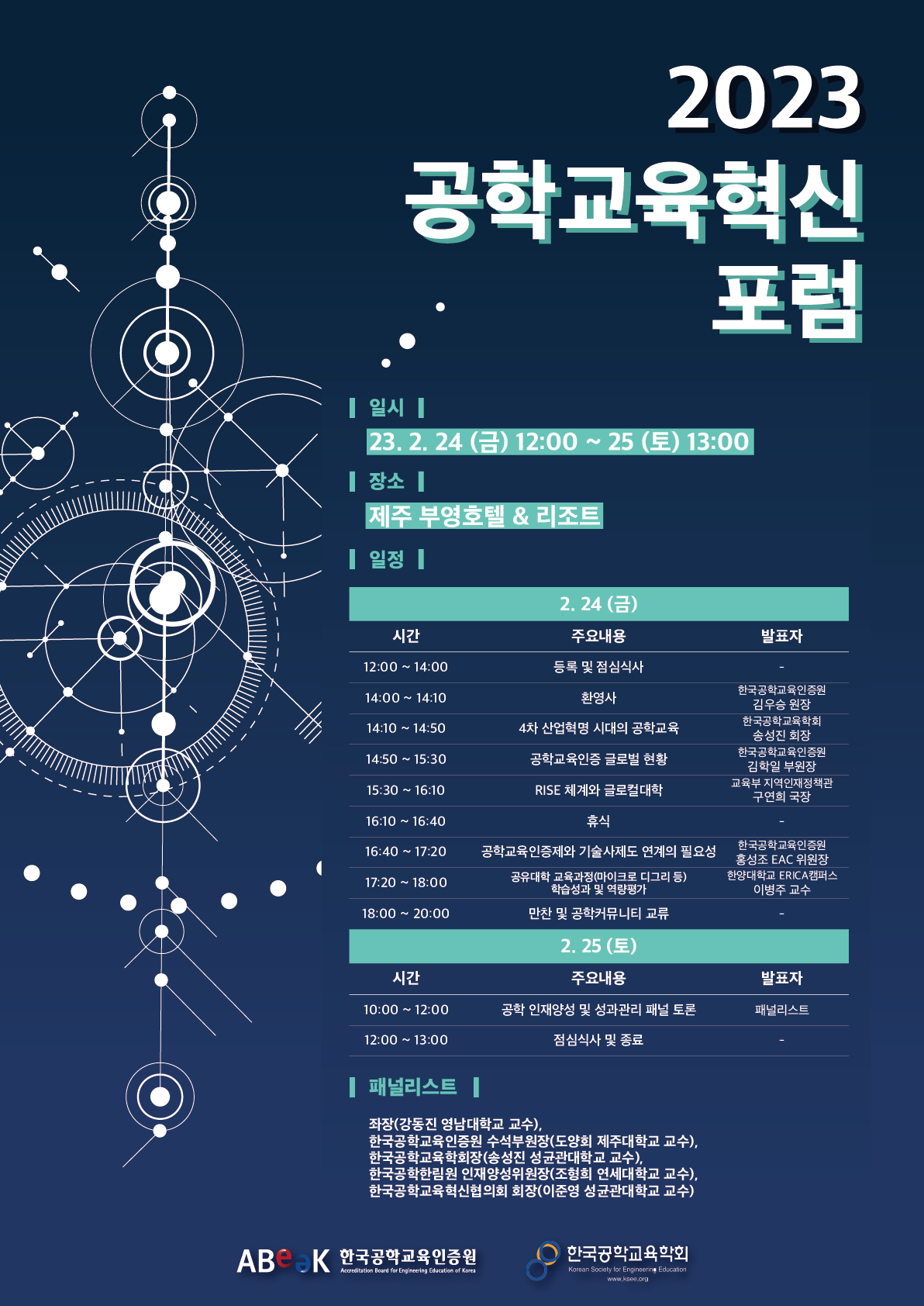 2023년 공학교육혁신 포럼을 [아래]와 같이 개최하고자 하오니 많은 참석 부탁드립니다.